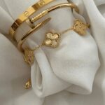 A delicate and meaningful Four-Leaf Clover Bracelet, symbolizing luck, love, faith, and hope. Crafted from high-quality materials like sterling silver, gold plating, or stainless steel, and often embellished with sparkling crystals, it offers a timeless and elegant accessory perfect for everyday wear or special occasions.