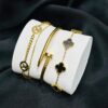 Elegant clover bracelet paired with a matching clover pendant on a sleek ...