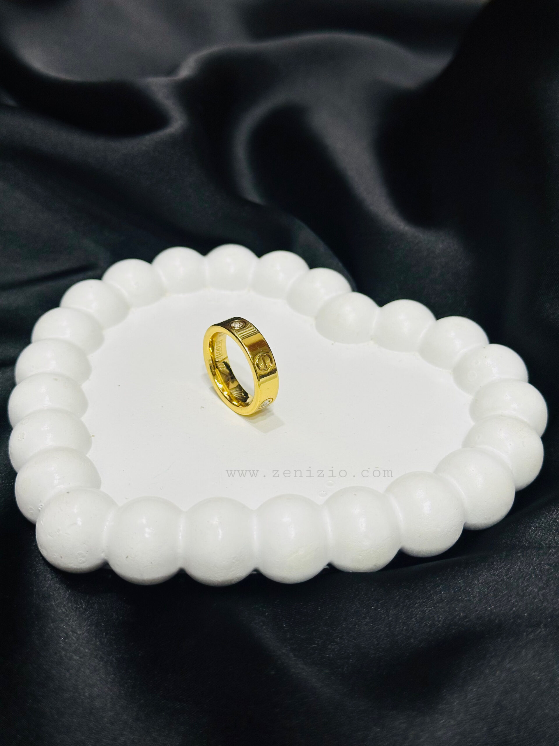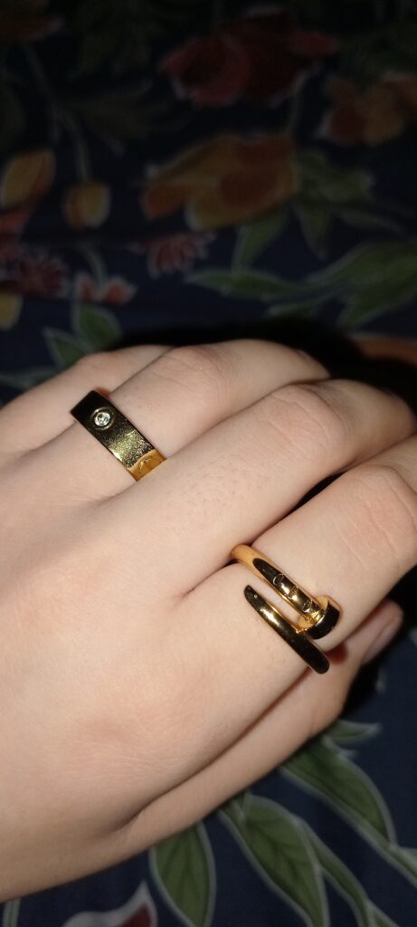 Classic and elegant, often with a sleek, polished surface or intricate details like engraving, gemstones, or the brand’s iconic motifs (e.g., the Love, Trinity, or Juste un Clou collections).