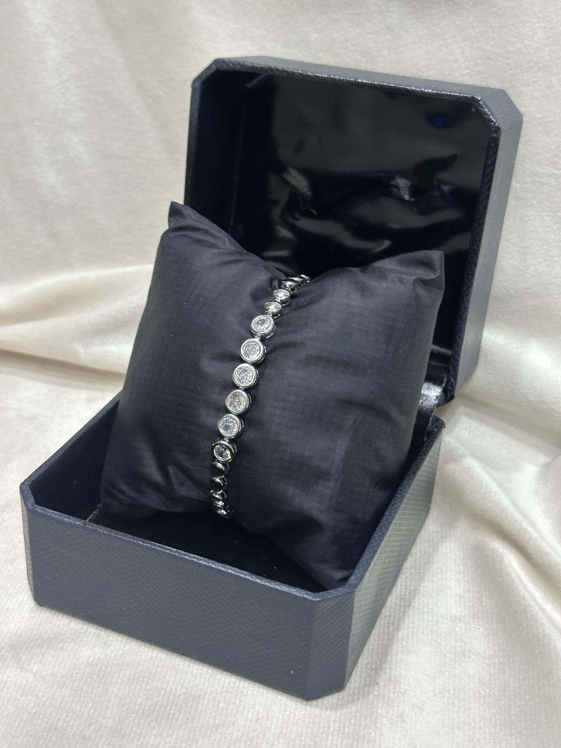 This Diamond Bracelet is a stunning piece of luxury jewelry, designed to add a touch of elegance and sophistication to any ensemble. Crafted from high-quality precious metal—whether white gold, yellow gold, or platinum—the bracelet features a delicate, yet durable chain that comfortably wraps around the wrist. The diamonds, expertly set to maximize their sparkle, are arranged in a flawless pattern, either as a continuous line or in a carefully designed arrangement to create an eye-catching effect. Each diamond is hand-selected for its clarity, cut, and brilliance, ensuring exceptional quality. Whether worn for a special occasion or as an everyday statement piece, this bracelet exudes timeless beauty and craftsmanship. Perfect for those who appreciate the finer things in life, it makes an ideal gift for celebrations like anniversaries, birthdays, or milestones.