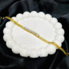 A gold-tone bracelet featuring a central row of clear, round, prong-set stones (like rhinestones or cubic zirconia), bordered on both sides by a matching rope or twisted chain. It combines the elegance of a tennis-style bracelet with the texture of a chain.