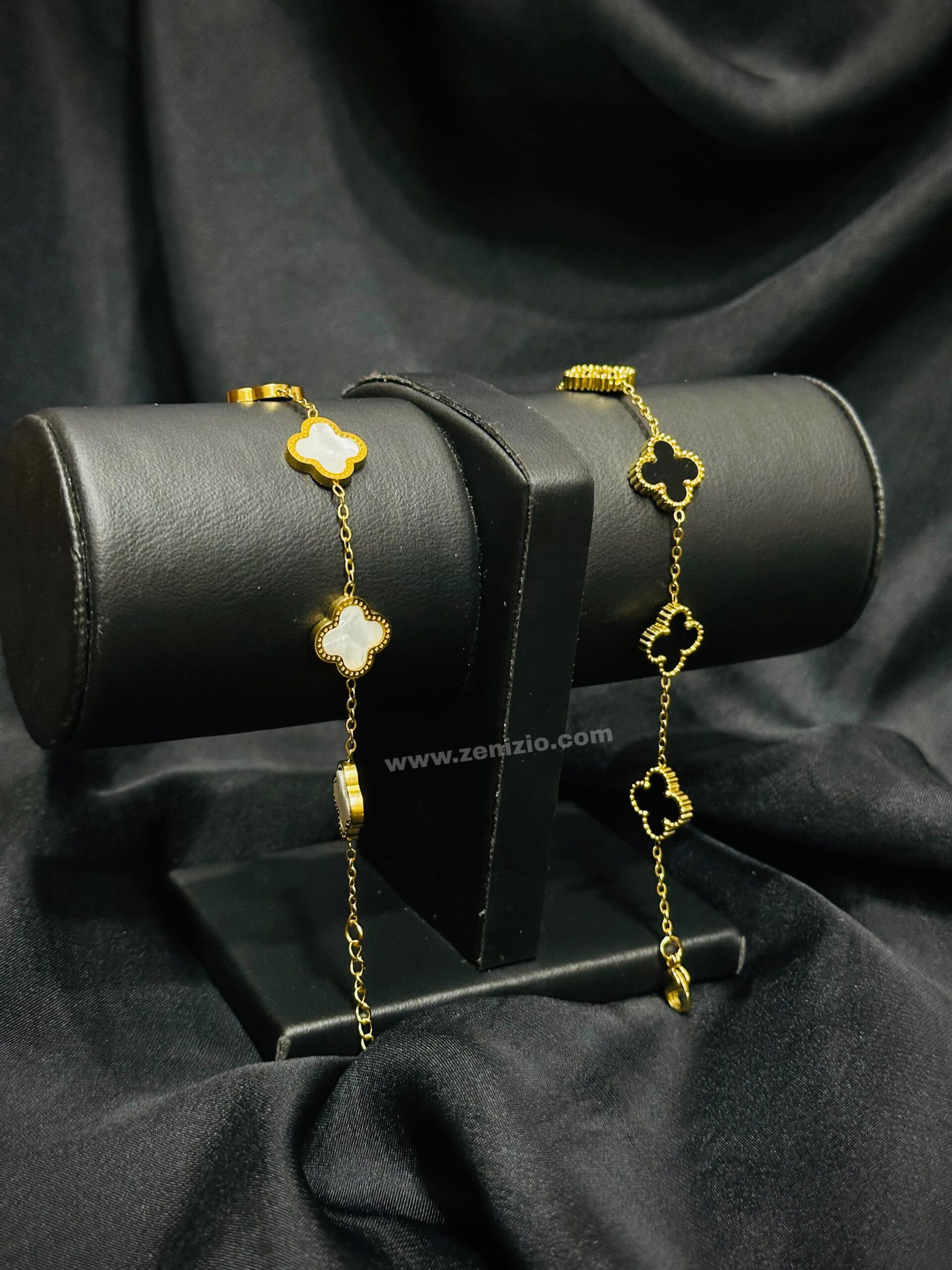 A symbol of luck and elegance, this Leaf Clover Bracelet features a classic four-leaf design in your choice of white or black enamel. With its sleek finish and delicate style, it’s the perfect charm for everyday grace or special moments.
