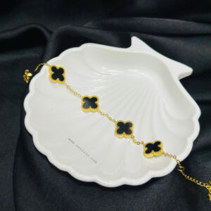 Elegant clover bracelet paired with a matching clover pendant on a sleek ...